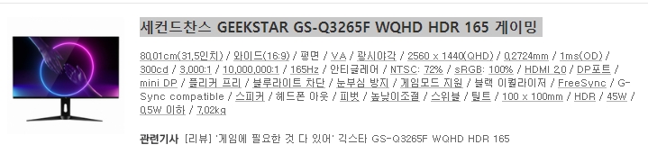 GEEKSTAR GS-Q3265F WQHD HDR 165 모니터를 구매하면서...