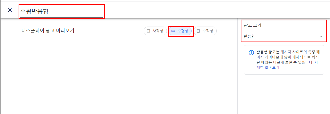 수직형 광고는 스크롤압박이 너무 심하므로 수평형 광고를 선택해줍니다
