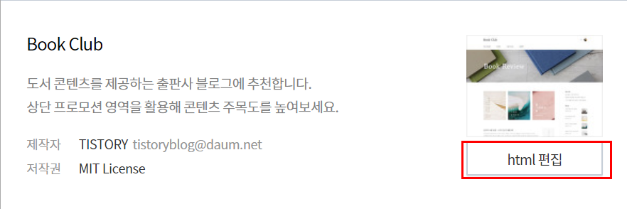 티스토리 내블로그관리 카테고리중 스킨편집 → 사용중인 스킨 '편집' → html편집 클릭