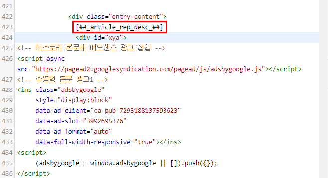 기본세팅 끝! 이제 본문에서 중간반응형 배너를 불러오는 방법!