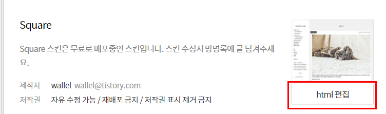 4. 자신의 스킨설정창 옆에 'html 편집' 을 클릭해주세요