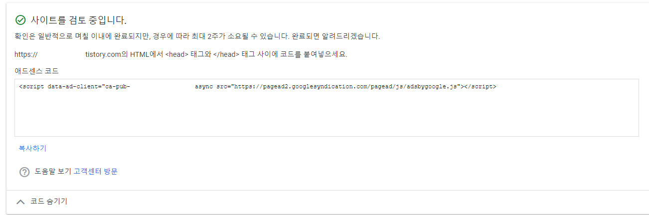 자신의 티스토리에 기입할 애드센스 코드를 아직 받지 못한분이라면