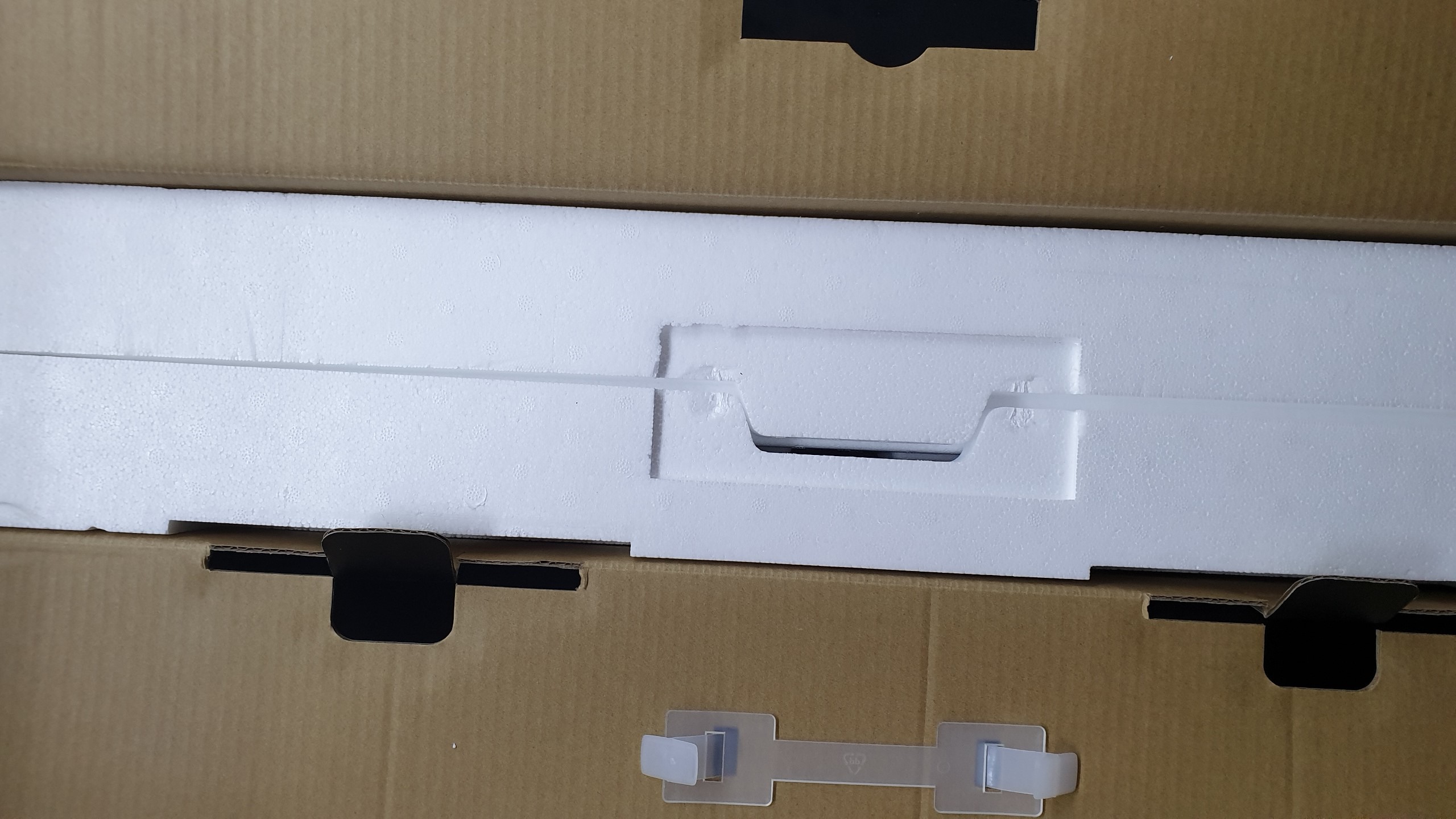 다만 화면 앞부분이 구멍뚫린 스티로폼에 안착되어있어 박스를 뚫을수 있는 송곳같은곳에 잘못 떨어트리면